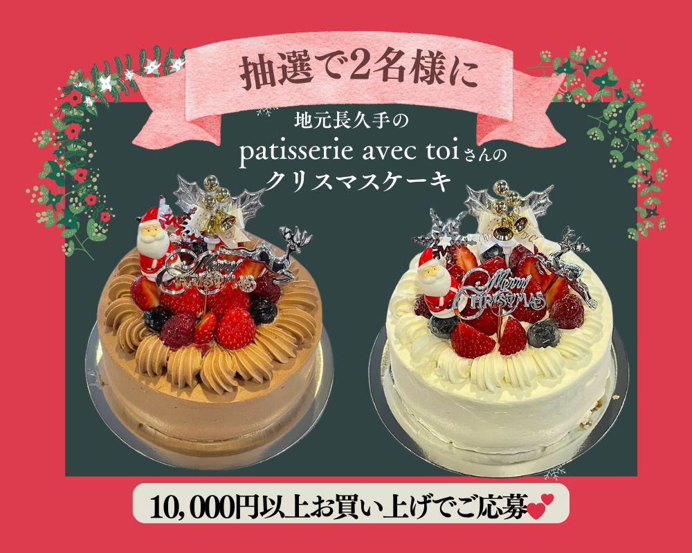 さんのクリスマスケーキ が、抽選で 2名様に当たります! 応募の際は、2種類のケーキの中からお好きなものを