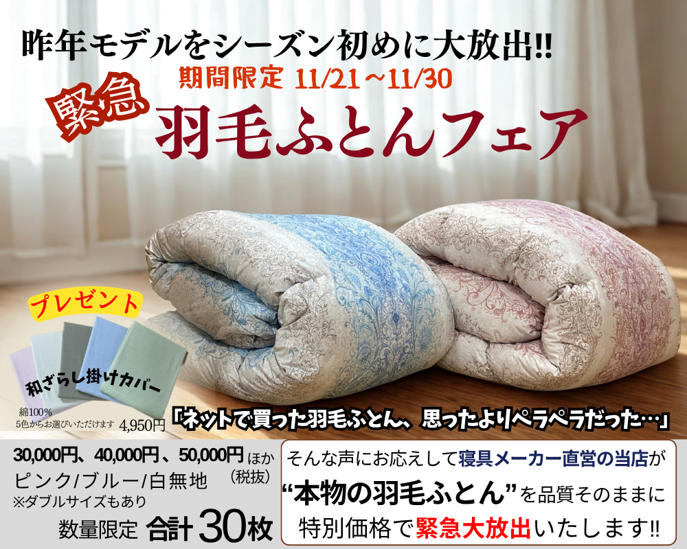 【緊急開催】 冬支度応援「羽毛ふとんフェア」11/21~30限定開催!