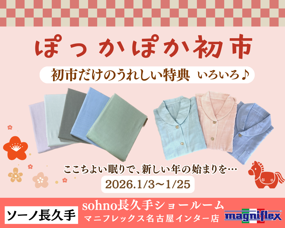 新しい年も 皆様にここちよい眠りを楽しんでいただき、お店ではゆったりお過ごしいただけますよう