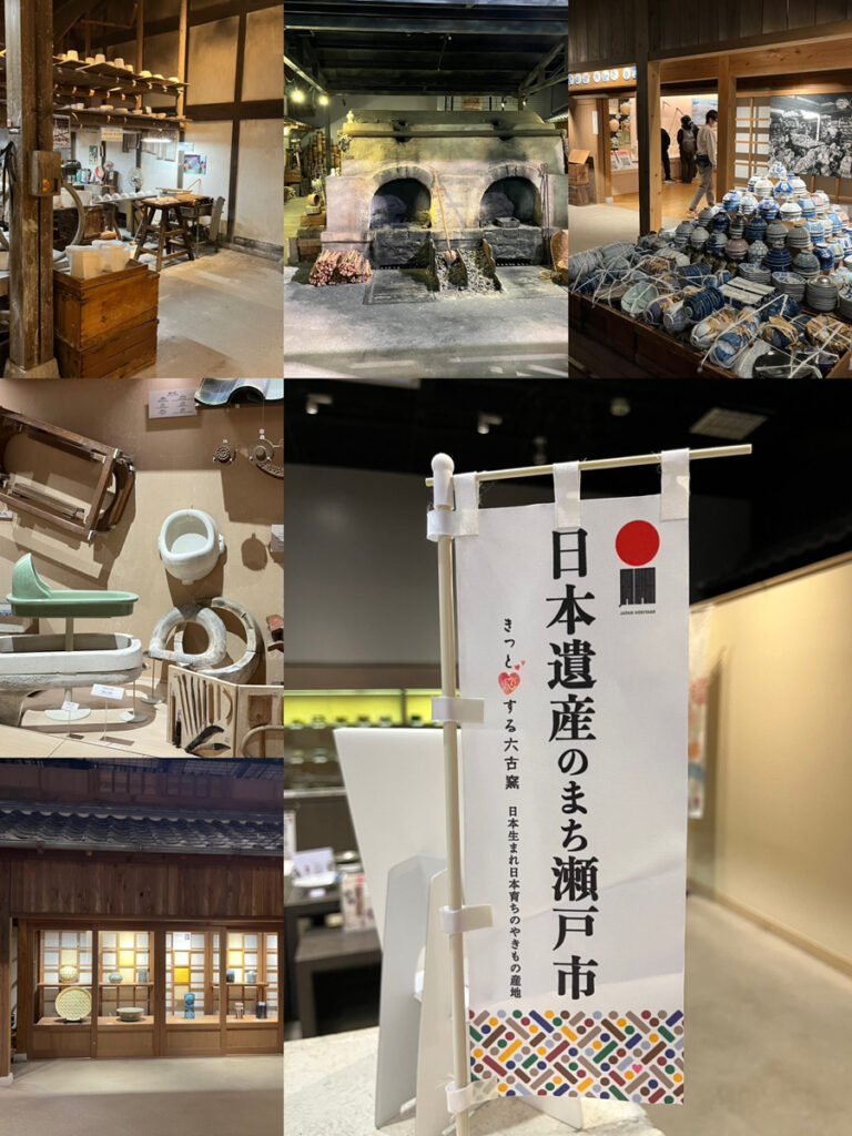 駅舎を抜けるとかつて瀬戸にあった工場が再現され、やきものが作られる工程を紹介→懐かしい「せともの屋」の店先の再現→そして生産道具展示室につながります。ここではやきものづくりの道具、機械類などが展示されているのですが、うちの二女Nちゃんが一番興味をそそられたのが…昔のお手洗いの展示物でした😊なぜかずーっと釘付けになるNちゃんでしたww